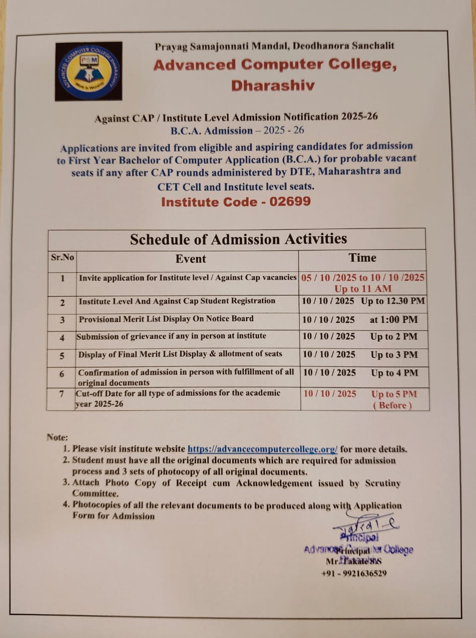 Please be informed that the Diwali vacation will commence on October 26, 2024, and will conclude on November 10, 2024. The college will reopen on November 11, 2024.